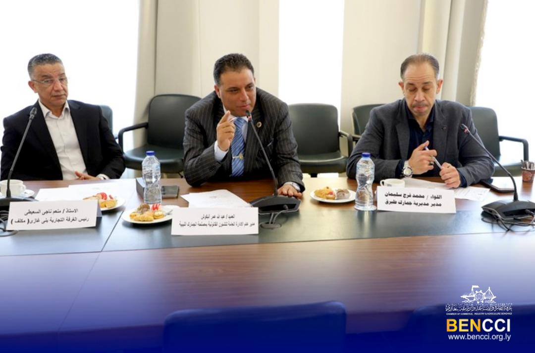 في إطار تعزيز التعاون بين قطاعي التعليم والأعمال: اجتماع تنسيقي بين وزارة التعليم العالي وغرفة التجارة والصناعة والزراعة بنغازي