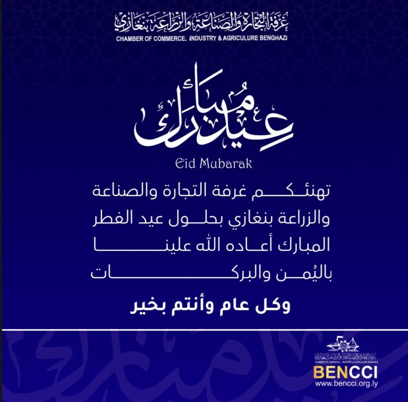 | يسرّ غرفة التجارة والصناعة والزراعة – بنغازي أن تتقدم بأسمى آيات التهاني وأطيب التبريكات إلى منتسبيها الكرام...